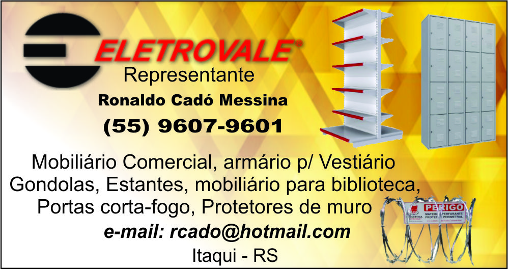 A ELETROVALE COM SEU REPRESENTANTE EM ITAQUI VEM OFERECER A VOCÊ PRODUTOS TANTO NA ÁREA ELÉTRICA QUANTO EM MOBILÍA COMERCIAL. CONFIRA.